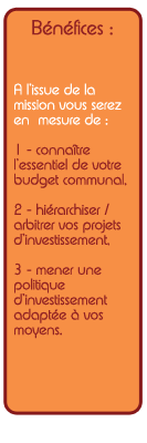 Vous bénéficierez d’une offre de conseil budgétaire entièrement adaptée aux problématiques de votre commune. Vous disposerez alors de toutes les informations utiles pour votre gestion municipale.